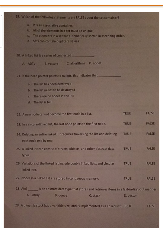 Solved 19 Which Of The Following Statements Are False Chegg Com