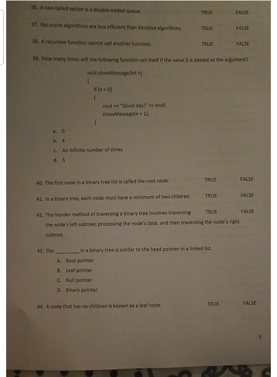 Solved Q4 State Whether The Following Statements Are True Chegg Com